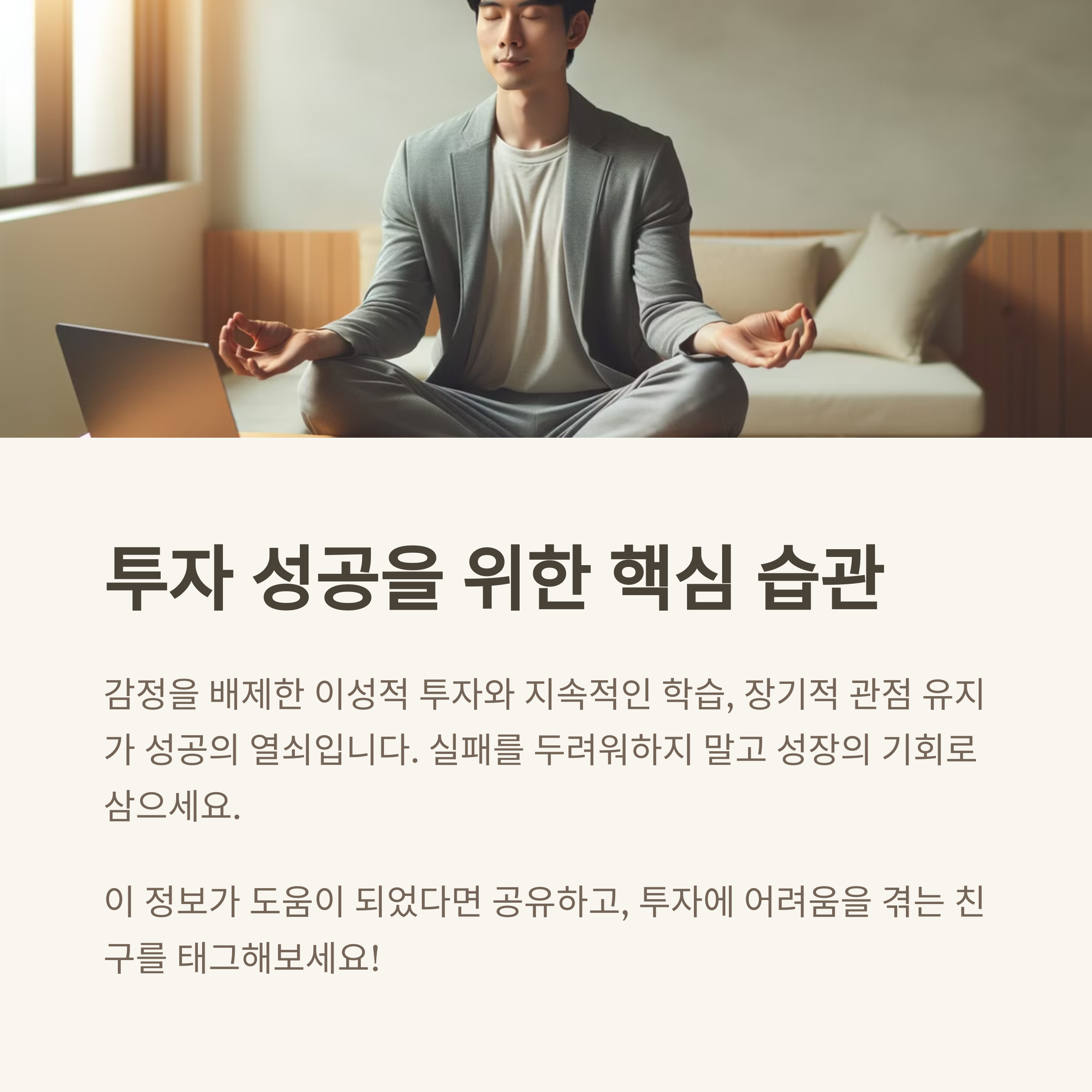 투자는 ‘하는 것’보다 ‘돌아보는 것’이 더 중요합니다. 매번 점검하는 습관이 있다면, 손실은 줄고 수익은 자연스럽게 따라옵니다. Plan → Check → Fix, 이 3단계 루틴만 지켜도 당신의 투자는 실패보다 배움으로 가득 찰 것입니다.