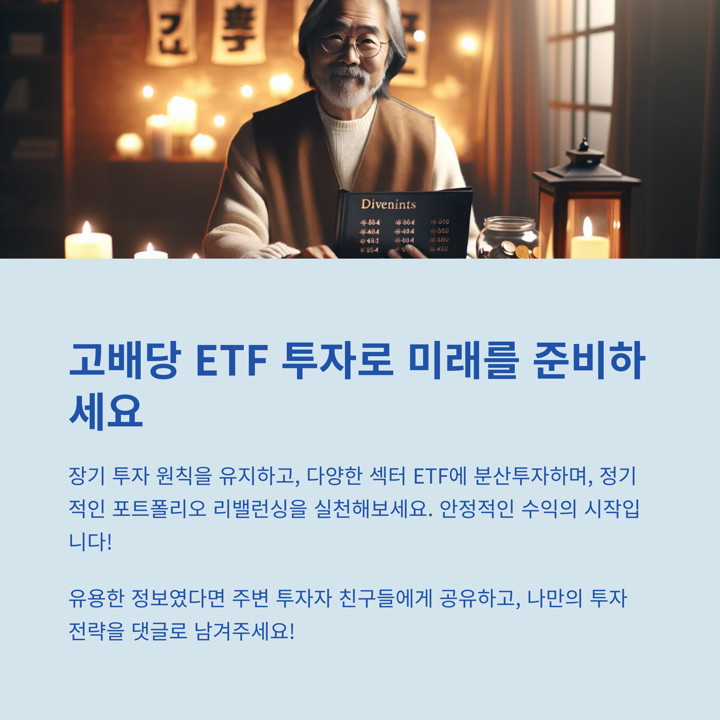 직접 투자 중인 고배당 ETF, 세금 팁, 재투자 루틴이 있다면 댓글로 공유해 주세요. 함께 배우며 절세 투자로 나아가요.