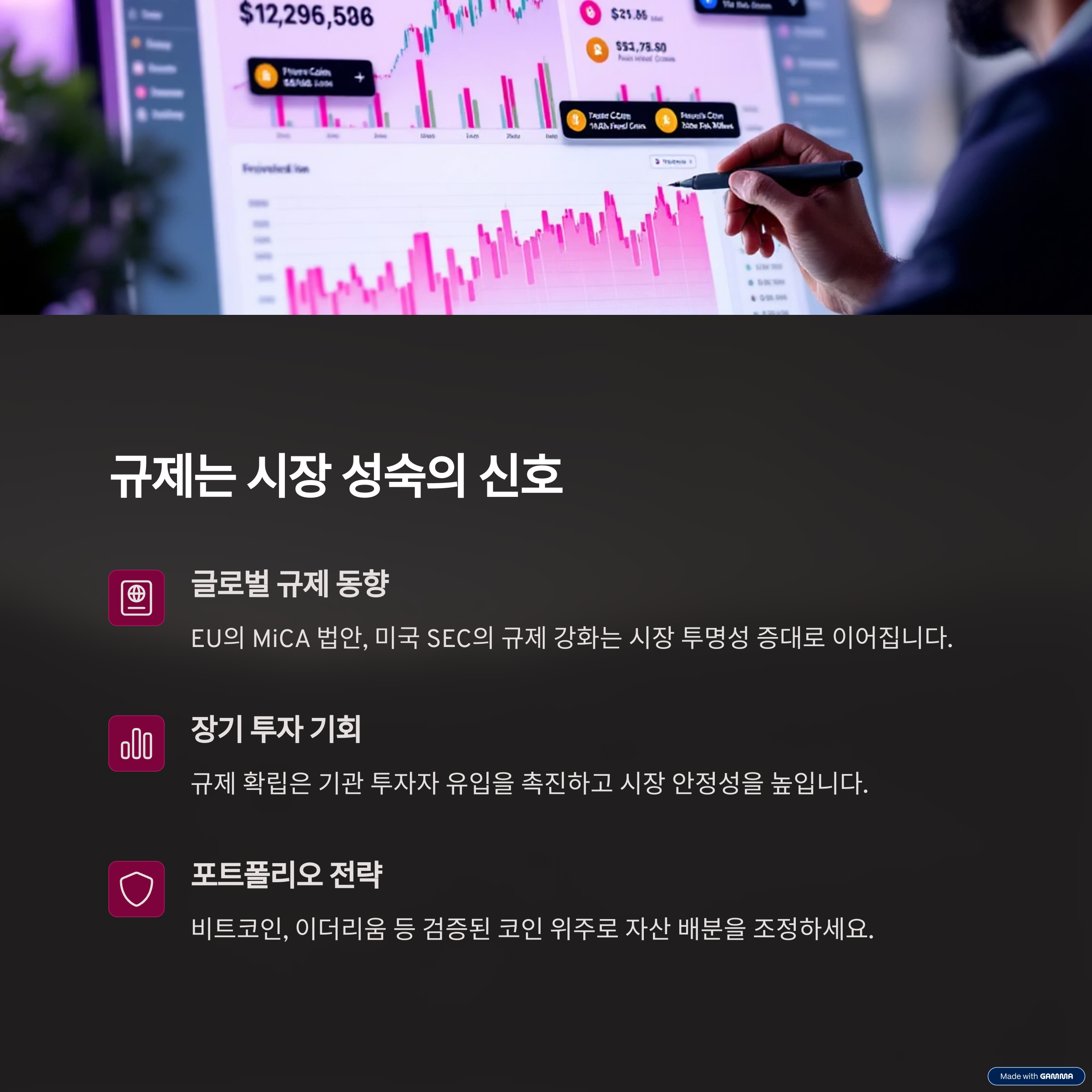 규제는 암호화폐 시장의 성장을 멈추게 하는 것이 아니라, 오히려 체계적인 성장을 위한 기초 작업일 수 있어요. 규제가 명확해지면 기관 자금이 유입되고, 시장은 더 넓어질 수 있습니다. 앞으로는 이 흐름에 발맞춘 투자 전략이 더 중요해질 겁니다.