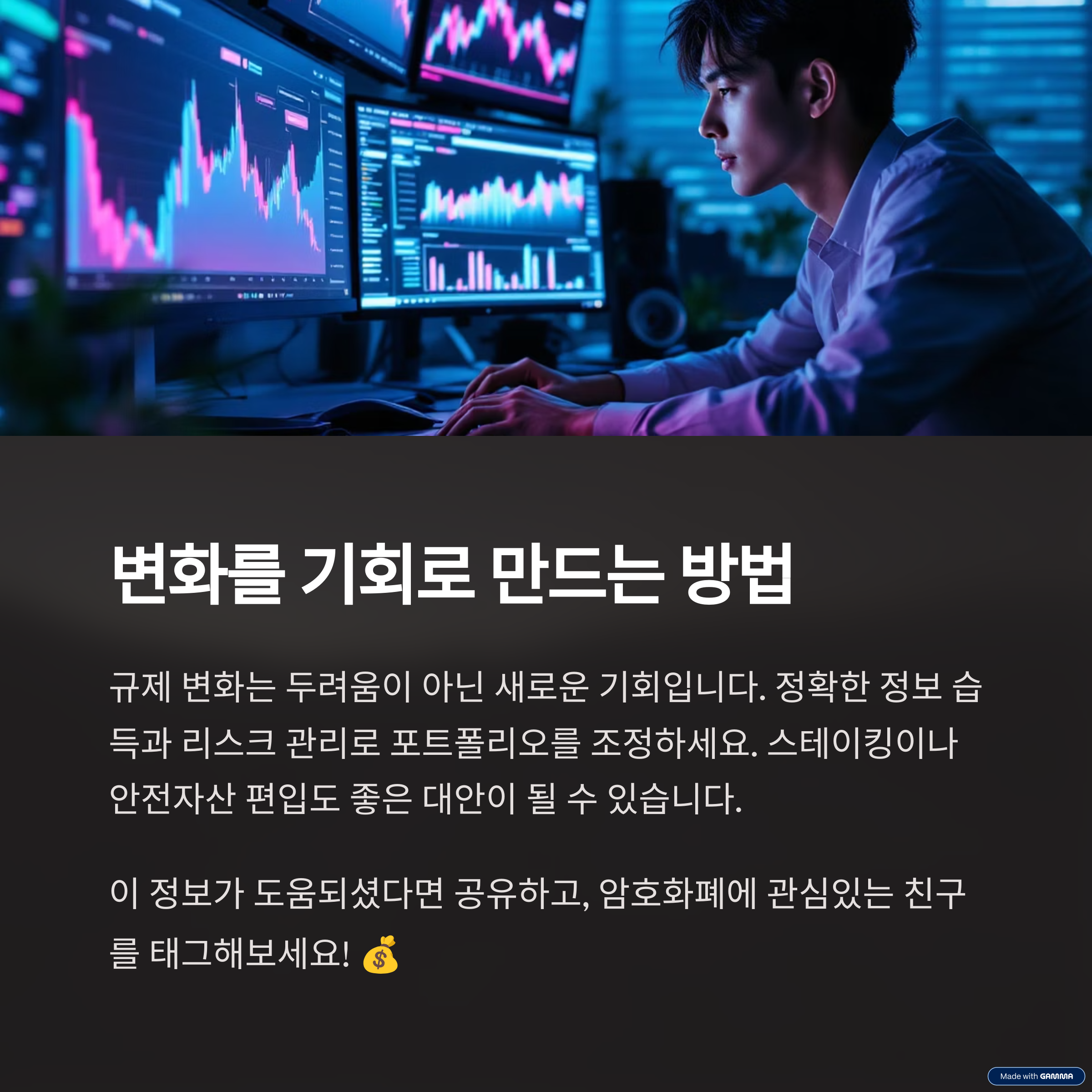 암호화폐 시장, 규제의 물결 속에서도 여전히 기회는 존재해요. 이번 글을 통해 우리가 투자자로서 어떤 시각과 전략을 가져야 할지 조금은 감이 오셨을 거라 생각해요. 중요한 건 두려움보단 이해, 회피보단 대응이죠. 규제는 끝이 아니라 변화의 시작이에요. 지금이야말로 더 단단하고 지혜로운 투자자가 될 수 있는 좋은 타이밍이에요. 여러분도 이 변화 속에서 기회를 포착하시길 바라요!