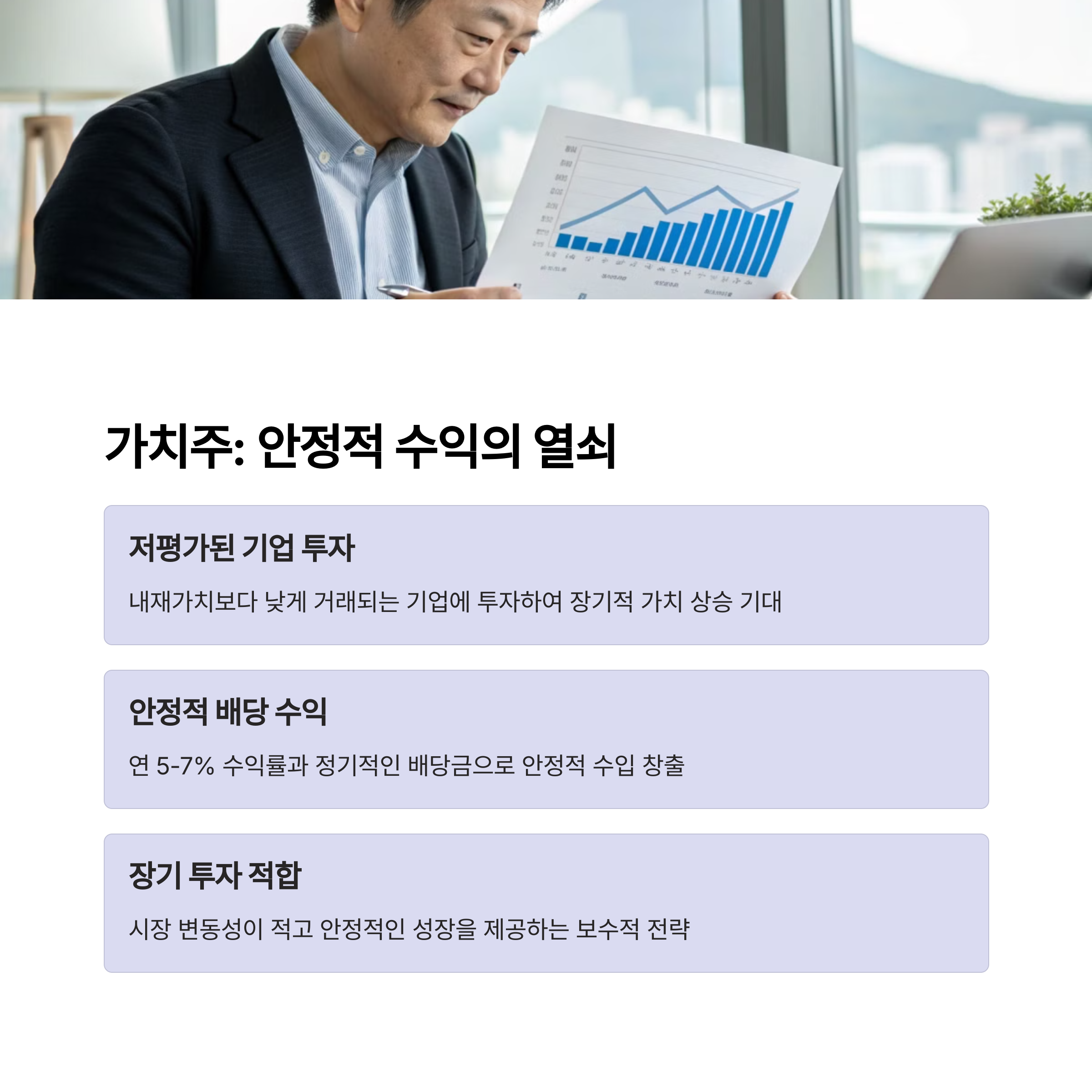 | 가치주 특징 | 안정적 배당, 저평가된 주가, 실적 기반 |