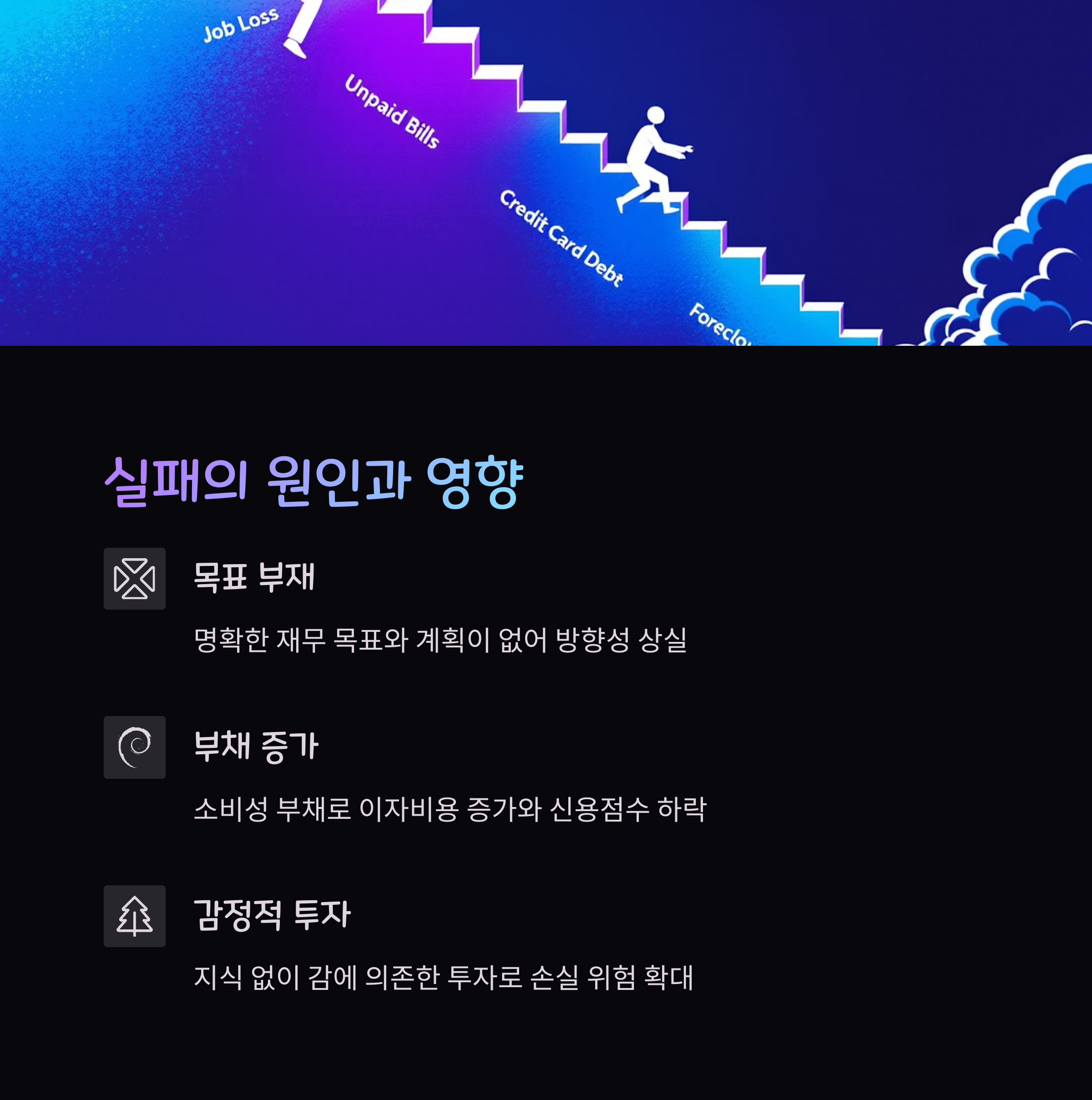 자산관리에 실패하는 사람들은 예산 관리 부재, 투자 기피, 금융 무지, 부채 악순환, 목표 부재라는 공통된 함정을 가집니다. 돈을 벌어도 자산이 늘지 않는 이유를 돌아보고, 올바른 금융 습관과 전략을 통해 재무 흐름을 바로잡아야 합니다. 오늘부터 작은 습관을 바꿔보세요.