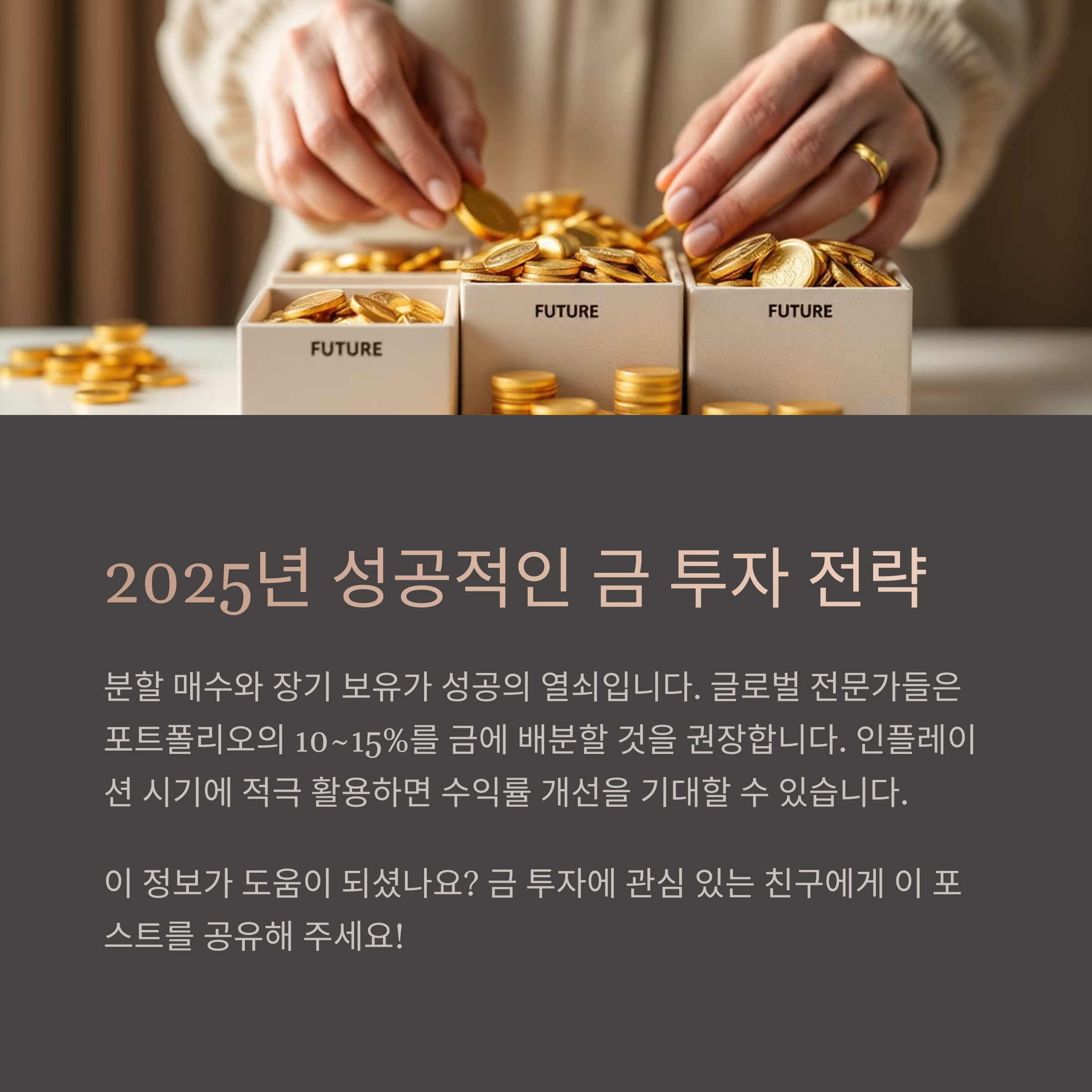 2025년은 여전히 경기 불확실성과 인플레이션 압력이 혼재할 가능성이 있습니다. 금은 여전히 매력적인 자산으로, 분할 매수와 장기 보유 전략이 추천됩니다.