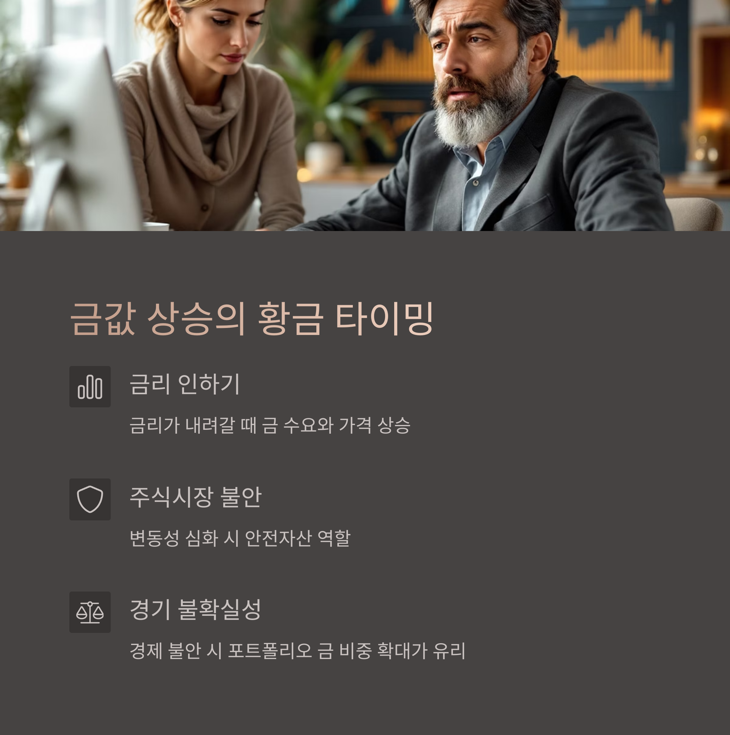 금 투자, 언제 시작해야 할까 고민되시죠? 오늘은 금 투자 타이밍과 시기별 전략을 체계적으로 정리해 드립니다.